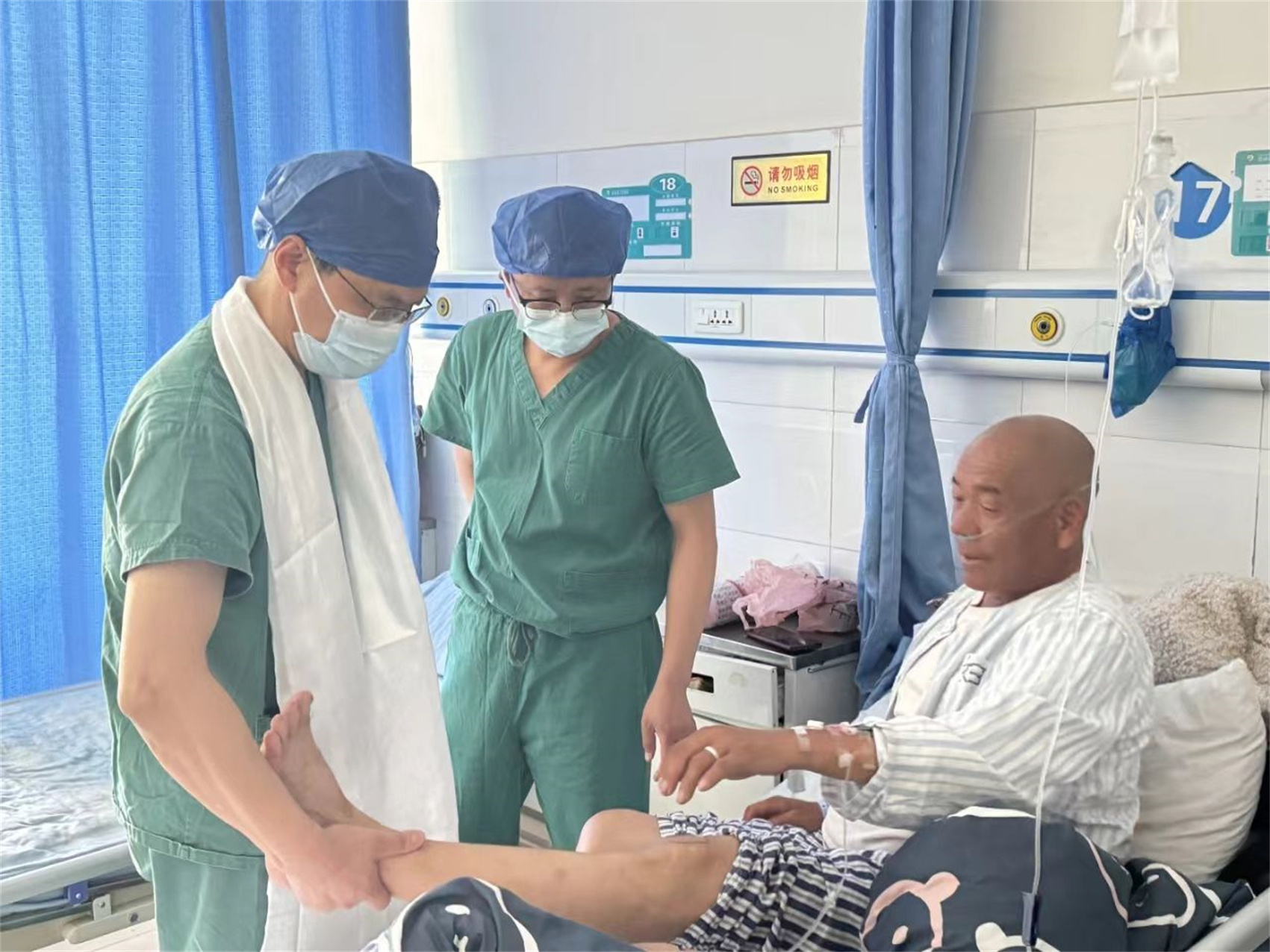 病房里和李秀文同樣幸運的還有60歲的拉空登巴大叔,登巴大叔被膝關節(jié)疼痛困擾多年,雙腿膝關節(jié)變形,上下樓梯時痛感會更加明顯。當天一大早,登巴大叔就從家里趕到縣醫(yī)院,做術前準備?!昂荛_心,我滿足了手術條件,希望手術順順利利!”登巴大叔激動地說。