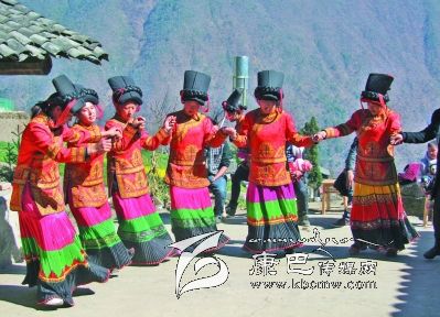 在磨西的青崗坪村,在被冰雪覆蓋的山巒眺望著的村莊,春節(jié)來臨的日子,彝家 兒女打開了彝家的美酒,燦爛的陽光搖曳濃烈的酒香,穿上紅紅的彝家服裝,彝家的女兒手拉手跳起舞。