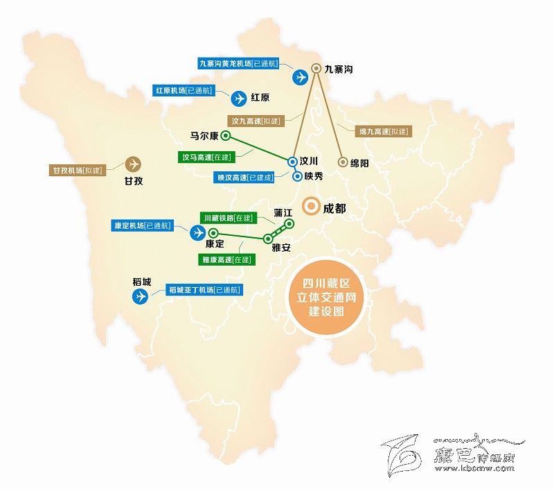 上月出臺的《四川省推進實施長江經濟帶綜合立體交通走廊規(guī)劃工作方案》中提出,我省將加快支線機場建設,包括進一步完善位于四川藏區(qū)的紅原機場配套設施,以及將在“十三五”期間,開工建設同樣位于藏區(qū)的甘孜機場。鐵路方面也有好消息,備受關注的川藏鐵路,除了剛剛全線開工的蒲江至雅安段外,還將在明年上馬建設雅安至康定(新都橋)段。