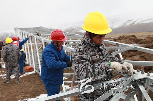 石渠縣海拔高,長冬無夏,空氣含氧量僅為成都平原的45%,電力建設(shè)面臨著“高原高寒缺氧、生態(tài)環(huán)境脆弱、凍土區(qū)沼澤區(qū)施工”等世界性難題。在這里走路稍微快一點(diǎn)都要大口喘氣,更何況在高山雪地上施工,搬運(yùn)建材,其施工難度可想而知。石渠至洛須110KV工程是國網(wǎng)成都供電公司承擔(dān)“電力天路”工程項(xiàng)目中唯一一條110kV電壓等級線路工程,是連接石渠變電站和在建的110kV洛須變電站的主要電力通道,線路全長為64.268km,新建鐵塔187基,沿線海拔高度為3300~4800m,線路多在雪山脊梁及斜坡走線。4月的石渠高原,依然是冰天雪地,寒風(fēng)呼嘯,在石渠至洛須110KV線路87基塔基澆筑現(xiàn)場,這里海拔4500多米,然而這里卻是一片熱火朝天的場景,一頂頂黃色安全帽下,急促呼吸冒出的熱氣讓每一個(gè)人的面目更加模糊?,F(xiàn)在內(nèi)地正是春暖花開,春意盎然的季節(jié),而我們的施工現(xiàn)場確實(shí)冰天雪地,為了讓廣大農(nóng)牧民早日用上電,四川電建工人們克服高寒、缺氧等惡劣自然條件,正在抓緊施工。110kV線路有的建設(shè)段施工人員靠相互扶持摸索上山,有的施工點(diǎn)一個(gè)來回要走6個(gè)多小時(shí),材料、工器具都必須靠驢隊(duì)及索道運(yùn)輸。為了搶工期節(jié)約時(shí)間工程建設(shè)者克服嚴(yán)重的高寒缺氧等惡劣的自然條件吃住在雪山上,累了、呼吸困難時(shí)吸口氧,渴了吃一把身邊的“雪糕”。到今年4月30日,“電力天路”石渠境內(nèi)工程進(jìn)度已完成工程總投資的40%。